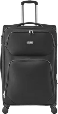 erweiterbares Weichgepäck Reisekoffer mit Spinner-Rädern (505 x 340 x 820 mm), Stoffkoffer Handgepäck mit erweiterbarer Reißverschlusstasche & TSA-Schloss Schwarzer Handgepäckkoffer