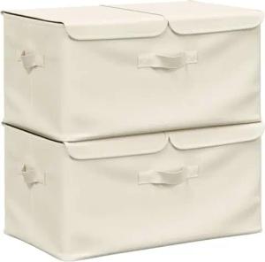 2x Aufbewahrungsbox Spielzeugkiste Spielzeugbox Stoffbox Faltkiste Faltbox Regalkorb Kiste Korb Box Organizer Stoff 50x30x25cm Creme