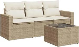 4-TLG. Garten-Sofagarnitur mit Kissen Beige Poly Rattan