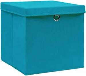 4X Aufbewahrungsbox mit Deckeln Zusammenklappbar Spielkiste Regalkorb Faltkiste Korb Kinderbox Box Kiste Faltbox 28x28x28cm Babyblau