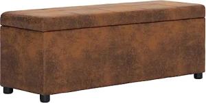 Bank mit Staufach Sitzbank Sitzhocker Sitztruhe Flurbank Truhenbank Aufbewahrungsbox Truhe Spielzeugkiste Polsterbank 116cm Braun Wildleder-Optik
