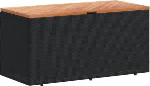 Gartentruhe Schwarz 110x50x54 cm Poly Rattan Akazienholz