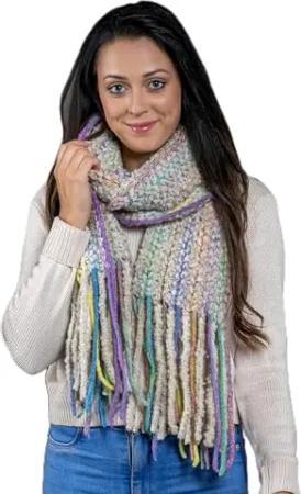 Italienischer Schal Chadia grob gestrickt mit Fransen 180cm x 28cm