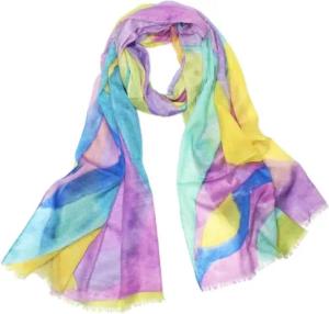 Damen Schal mit Farbverlauf – Leichter, Weicher Bunter Sommer Halstuch - S205 (S205-LavendelBlueYellow)