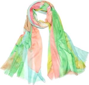Damen Schal mit Farbverlauf – Leichter, Weicher Bunter Sommer Halstuch - S205 (S205-LimegreenPeachy)