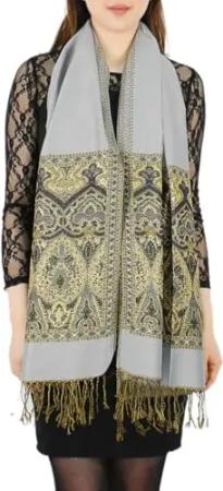 Elegante Damen Stola mit goldfarbenem Glanzfaden Schal Halstuch (STO003-Grau)