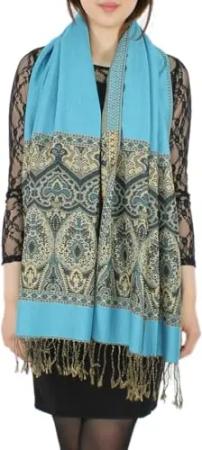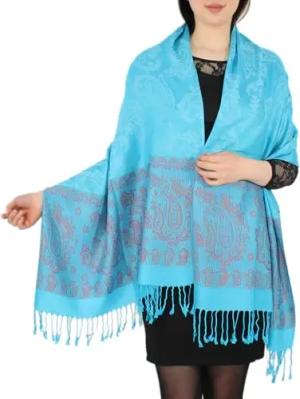 Eleganter Damen Schal im Paisley Muster Stola Schultertuch in Knallfarben (STO002-Türkisblau)