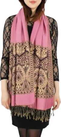 Elegante Damen Stola mit goldfarbenem Glanzfaden Schal Halstuch (STO003-Rosé)