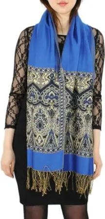 Eleganter Damen Schal im Paisley Muster Stola Schultertuch in Knallfarben (STO002-Royalblau)