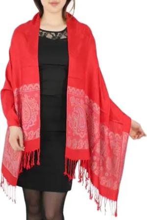 Eleganter Damen Schal im Paisley Muster Stola Schultertuch in Knallfarben (STO002-Knallrot)