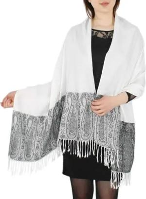 Eleganter Damen Schal im Paisley Muster Stola Schultertuch in Knallfarben (STO002-SchwarzWeiß)