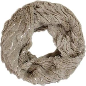 Kunstpelz Loop Schal Damen/Kunst Fell Schal Metallic Pailleiten Muster - SP013-015 (SP013-Beige)