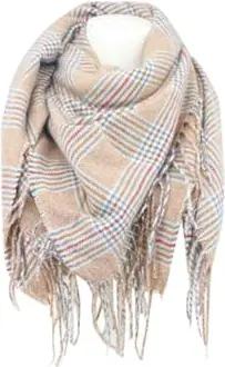 HomeRelax&Style Winter Damen Schal Cashmera » Fransenschal 105cm x 100cm » Winterschal I Damenschal Soft Tartan Farbe Beige