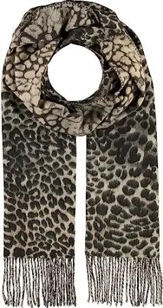 Schal 30 x 180 cm - Weicher als Kaschmir - Made in Germany - Schal mit Leo-Motiv für Damen - Perfekt für Herbst und Winter Taupe