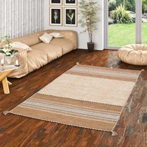 Natur Teppich Bauwolle Kelim Beige Braun in 6 Größen