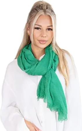 Dünner, leichter und weicher Uni Damen Schal in gewellter Struktur - Isabella (grün, One Size)