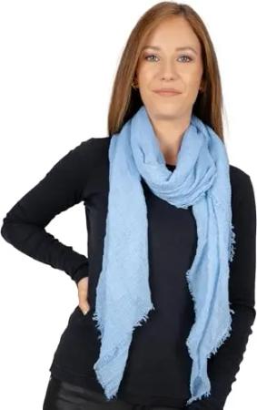 Dünner, leichter und weicher Uni Damen Schal in gewellter Struktur - Isabella (hellblau, One Size)