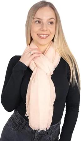Eleganter dünner, leichter und weicher Uni Damen Schal mit kurzen Fransen - Alessandra (light pink)