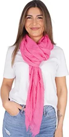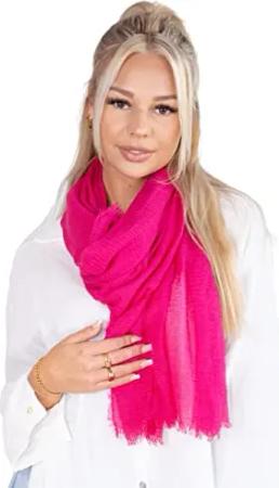 Dünner, leichter und weicher Uni Damen Schal in gewellter Struktur - Isabella (pink, One Size)