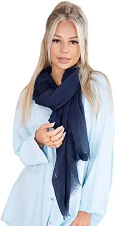 Dünner, leichter und weicher Uni Damen Schal in gewellter Struktur - Isabella (marineblau, One Size)