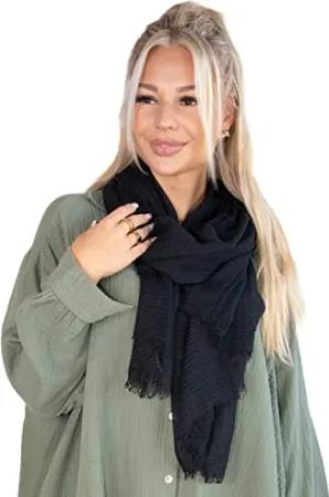 Dünner, leichter und weicher Uni Damen Schal in gewellter Struktur - Isabella (schwarz, One Size)