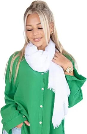 Dünner, leichter und weicher Uni Damen Schal in gewellter Struktur - Isabella (weiß, One Size)