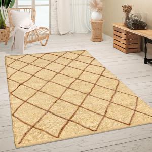 Teppich Wohnzimmer Naturfaser Handgearbeitet Jute Meliert Modernes Muster Boho Stil, Grösse:120x170 cm, Farbe:Natur 3