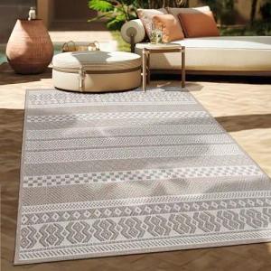 Outdoor Indoor Grau Teppich Terrasse Balkon 3D Optik Orient Look Flachgewebe, Grösse:120x170 cm