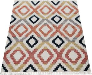 Wollteppich "Kenitra 501" rechteckig 12 mm Höhe Flachgewebe, reine Wolle, handgewebt, Rauten Design, mit Fransen