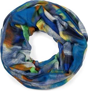 Damen Loop Schal mit abstraktem Pinselstrich Muster, Schlauchschal mehrfarbig bunt, Tuch 01017130, Farbe:Blau-Orange-Gelb