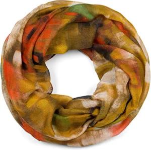 Damen Loop Schal mit abstraktem Pinselstrich Muster, Schlauchschal mehrfarbig bunt, Tuch 01017130, Farbe:Curry-Rot-Grün