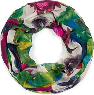 Damen Loop Schal mit buntem Blumen Muster, leichter sommerlicher Schlauchschal mehrfarbig 01016217, Farbe:Rot-Grün