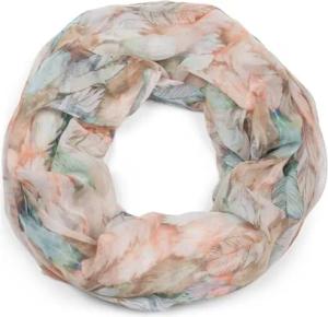 Damen Loop Schal mit buntem Feder Muster, leichter sommerlicher Boho Schlauchschal mehrfarbig 01016239, Farbe:Beige-Türkis