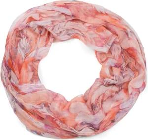 Damen Loop Schal mit buntem Feder Muster, leichter sommerlicher Boho Schlauchschal mehrfarbig 01016239, Farbe:Orange-Rot