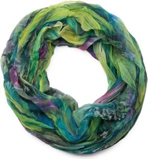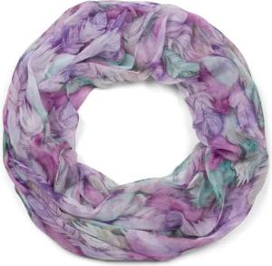 Damen Loop Schal mit buntem Feder Muster, leichter sommerlicher Boho Schlauchschal mehrfarbig 01016239, Farbe:Violett-Grün
