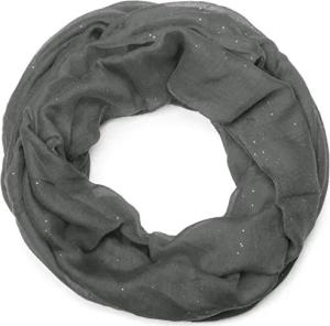 Damen Loop Schal mit Glitzer-Effekt | Einfarbiger Schlauchschal aus weicher Viskose | Leicht & Elegant | 87 x 93 cm, Farbe:Dunkelgrau