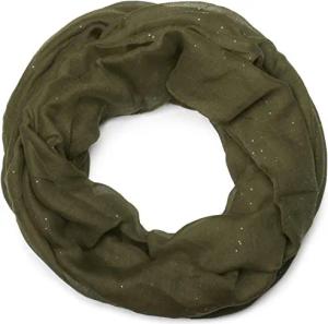 Damen Loop Schal mit Glitzer-Effekt | Einfarbiger Schlauchschal aus weicher Viskose | Leicht & Elegant | 87 x 93 cm, Farbe:Oliv