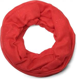 Damen Loop Schal mit Glitzer-Effekt | Einfarbiger Schlauchschal aus weicher Viskose | Leicht & Elegant | 87 x 93 cm, Farbe:Rot