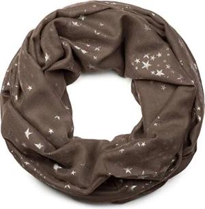 Damen Loop Schal mit Metallic Sterne Print | Glitzer Schlauchschal ca. 89 x 75 cm | Leichter Rundschal für Frühjahr & Herbst, Farbe:Dunkelbraun