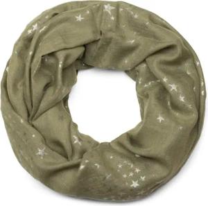 Damen Loop Schal mit Metallic Sterne Print | Glitzer Schlauchschal ca. 89 x 75 cm | Leichter Rundschal für Frühjahr & Herbst, Farbe:Oliv