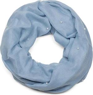 Damen Loop Schal mit Perlen Applikation, Unifarben, Leichter Schlauchschal Einfarbig, Tuch 01016168, Farbe:Blau