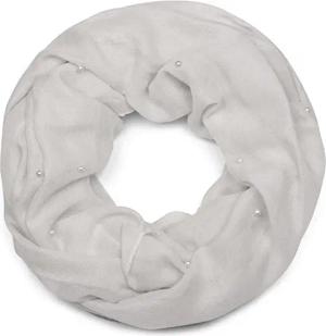 Damen Loop Schal mit Perlen Applikation, Unifarben, Leichter Schlauchschal Einfarbig, Tuch 01016168, Farbe:Hellgrau