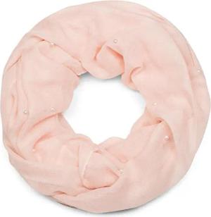 Damen Loop Schal mit Perlen Applikation, Unifarben, Leichter Schlauchschal Einfarbig, Tuch 01016168, Farbe:Rose