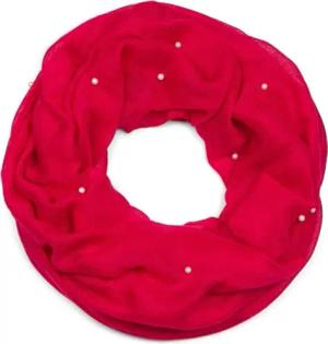 Damen Loop Schal mit Perlen Applikation, Unifarben, Leichter Schlauchschal Einfarbig, Tuch 01016168, Farbe:Rot