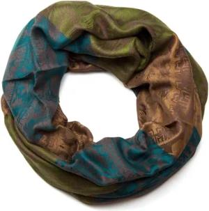 Damen Loop Schlauchschal mit Blumen, Hibiskus Blüten, Paisley Muster, warm und weich, Tuch, Schal 01018058, Farbe:Grün-Petrol-Hellbraun