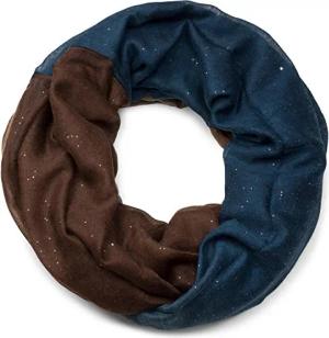 Damen Loop Schlauchschal mit mehrfarbigem Farbverlauf und Glitzer, Glitzerschal, Pailletten, Schal, Tuch 01017033, Farbe:Dunkelblau-Braun-Dunkelbraun