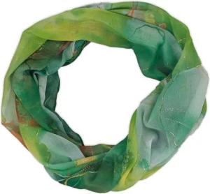 Damen Schlauchschal Aquarell Glow mit Metallic Akzenten leichter Loop Schal weich fließend atmungsaktiv für Frühling und Sommer, Farbe:Grün-Orange