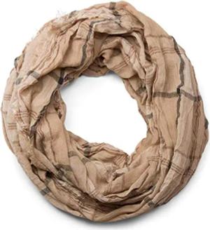Karo Muster Loop Schlauchschal in Crash Optik mit Fransen, weiche Qualität, Used Look, Unisex 01018057, Farbe:Beige
