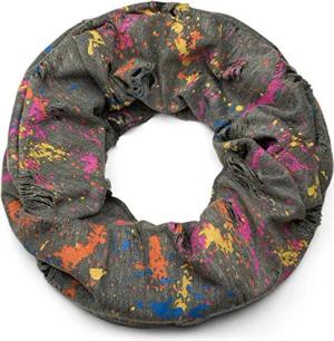 Loop Schal im Splat Style mit Klecksen und Zeichen im Destroyed Vintage Look, Unisex 01016119, Farbe:Anthrazit-Rot-Blau-Gelb