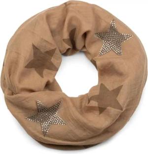 Loop Schal mit Sterne Muster und edler Strass Applikation, Schlauchschal, Tuch, Damen 01018086, Farbe:Hellbraun-Braun (One Size)